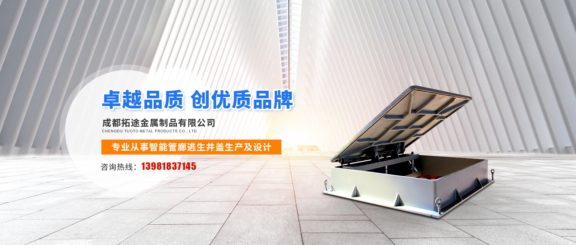 成都拓途金屬制品有限公司成立于2015 年2月,座落于成都金牛高科技產(chǎn)業(yè)園興川路866號(hào),公司專(zhuān)業(yè)從事交通及公共管理用器材的研發(fā)、設(shè)計(jì)、生產(chǎn)。主要產(chǎn)品:管廊逃生井蓋,管廊通風(fēng)口,管廊投料口及智能交通控制系統(tǒng)。我們始終堅(jiān)持以科技求發(fā)展,質(zhì)量求生存,追求卓越,真誠(chéng)服務(wù)的企業(yè)宗旨為目標(biāo),力求給廣大新老客戶(hù)提供優(yōu)質(zhì)的產(chǎn)品及服務(wù)。 我們是一家專(zhuān)業(yè)從事智能管廊逃生井蓋生產(chǎn)及設(shè)計(jì)公司,我公司經(jīng)營(yíng)井蓋行業(yè)多年,專(zhuān)注于提供種類(lèi)齊全,高質(zhì)量,長(zhǎng)壽命的智能管廊井蓋,產(chǎn)品涵蓋通...